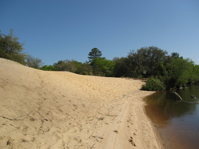Thoroughfare Creek goes around Sandy Island, a slightly inhabited island (or inhibited island as Ang might say) between the Waccama River and Thoroughfare Creek. There are some hardy families that live on the island, which is reachable only by boat and has no connercial power or water available. It is visited by lots of local boaters for swimming and jumping down the large sand bank faces. When we got here at 4 PM, there wer 3 or 4 small boats at the banks (see picture) but by 6 PM they were all gone and 5 other cruising yachts had anchored in the creek with us. It's called a creek, but it's 300 yards wide and 20 ft. deep. Except for the other yachts, all we can see is nature. This is what anchoring out is all about. Really beautiful and peacefull. I only have one bar on my cell phone so I'm lucky to have been able to connect to this blog, but it worked!